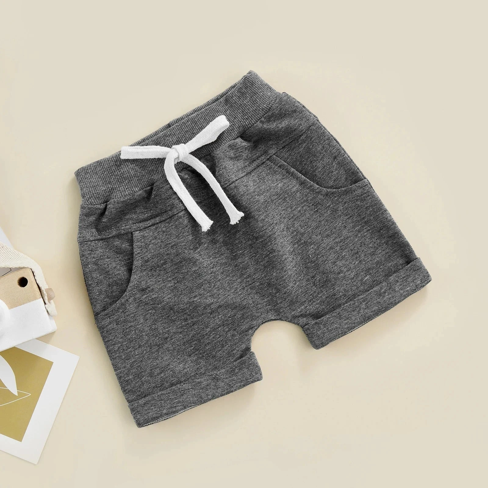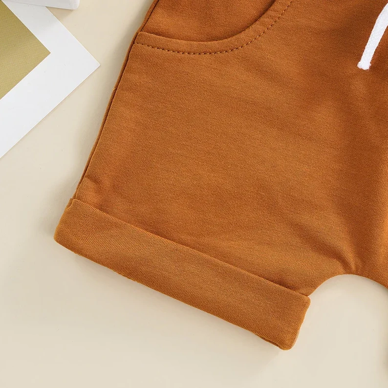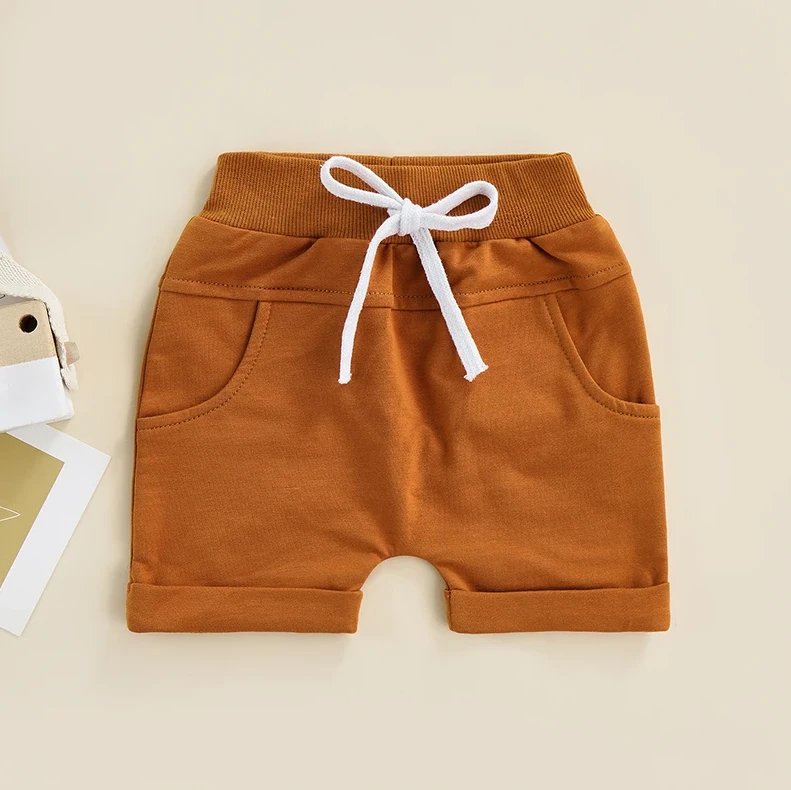 These are solid casual pocket elastic waist shorts for baby and toddler boys and girls who need comfortable, practical bottoms for everyday play. Made from a soft cotton blend, they feature classic solid colors with convenient pockets and an easy elastic waistband for fuss-free dressing. They solve the challenge of finding unisex shorts that are both functional enough for active little ones and versatile enough for any outfit.