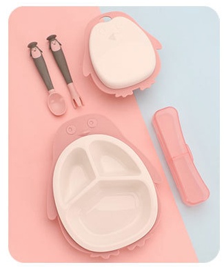 Kits available: 5 heads, small bowl, penguin plate, small bowl + spoon and fork, spoon and fork combination + storage box, complete 7-piece set, dessert plate + spoon and fork