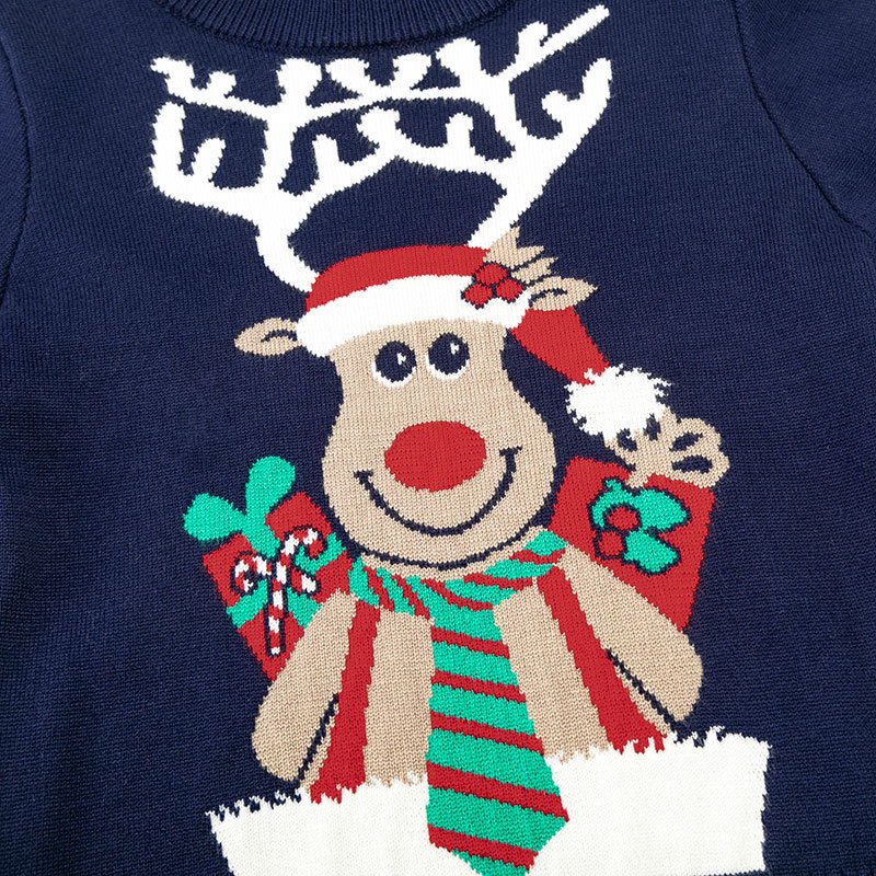This is a Christmas baby basic pullover sweater for kids ages 3-8 years who need a festive, cozy layer for holiday celebrations. Made from soft rayon knitted fabric in a classic navy blue, it features a simple pullover style with a round neck and long sleeves—perfect for pairing with jeans, skirts, or holiday outfits. Available in sizes from 3Y to 7Y (90-130cm), it solves the challenge of finding holiday apparel that’s both festive enough for Christmas photos and comfortable enough for everyday winter wear.