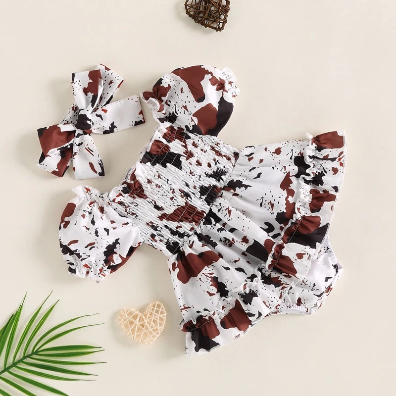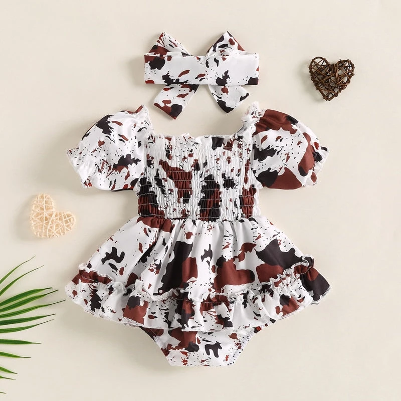 Style: Cow print romper dress with bow