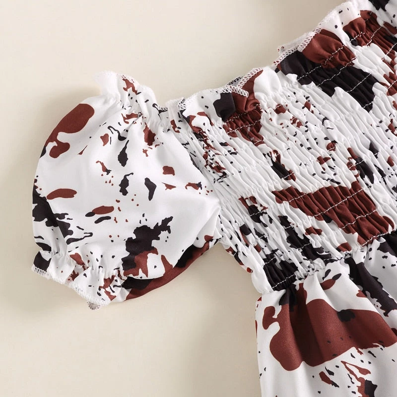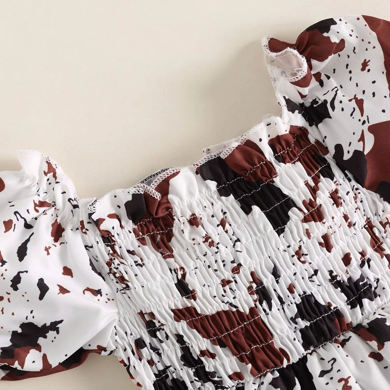 Cow Print Romper Dress with Bow