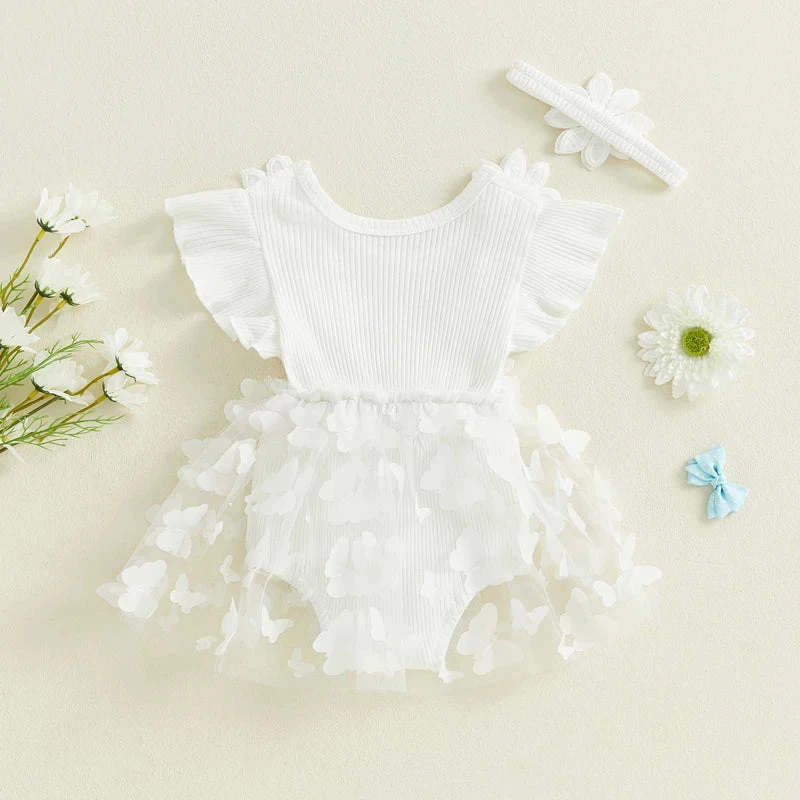 This is a 2-piece set for baby and toddler girls featuring a short sleeve ribbed butterfly flower dress with a matching headband. Made from a soft cotton blend, it combines sweet floral patterns with delicate butterfly accents and a comfortable ribbed texture. The coordinating headband completes the enchanting look. It solves the challenge of finding a coordinated outfit that’s both whimsical enough for everyday adventures and put-together enough for special moments.