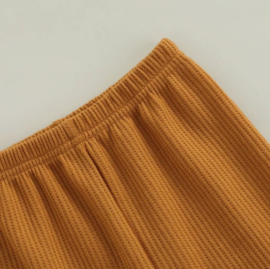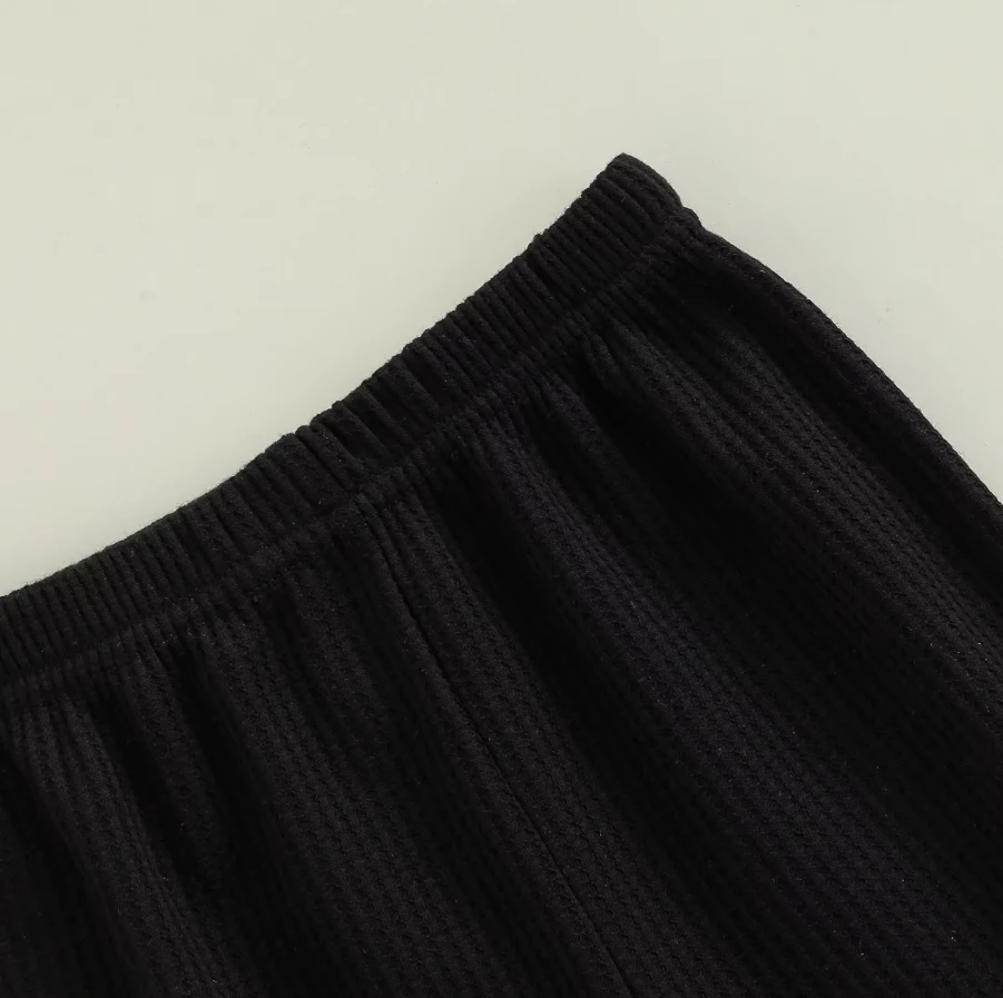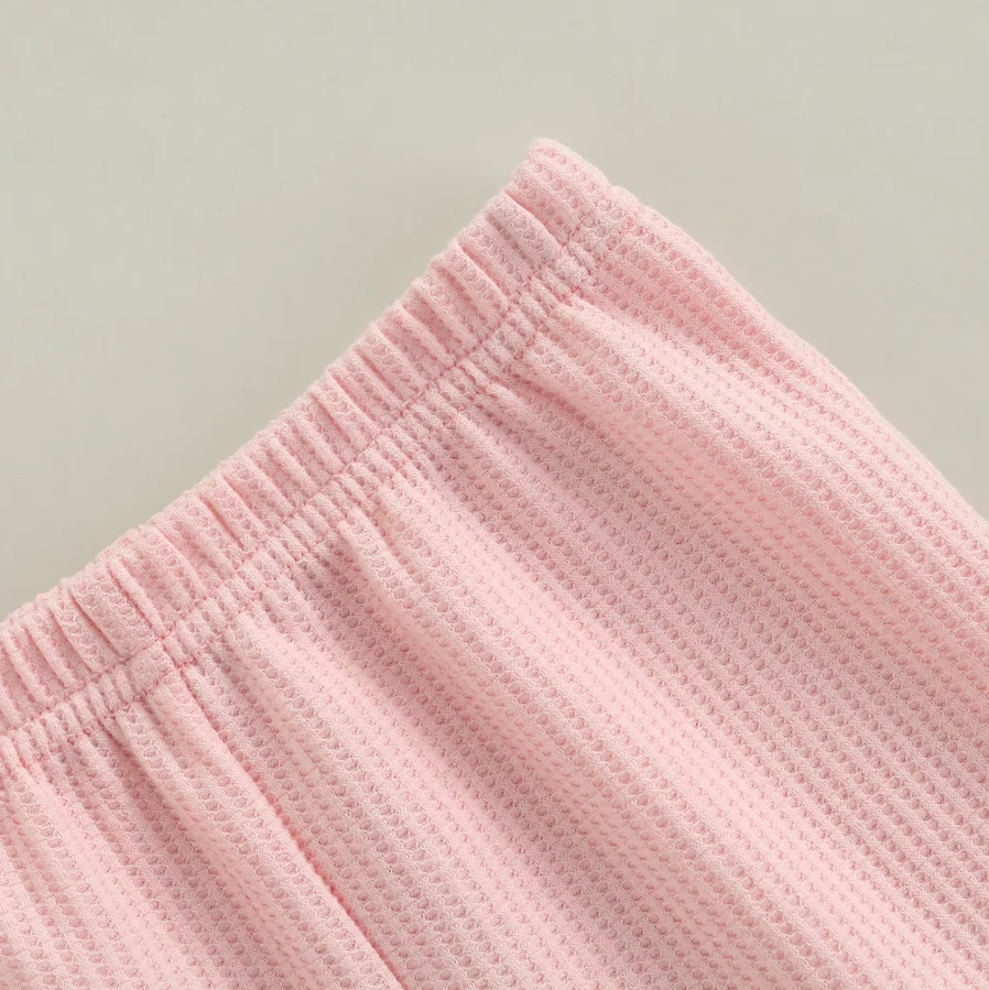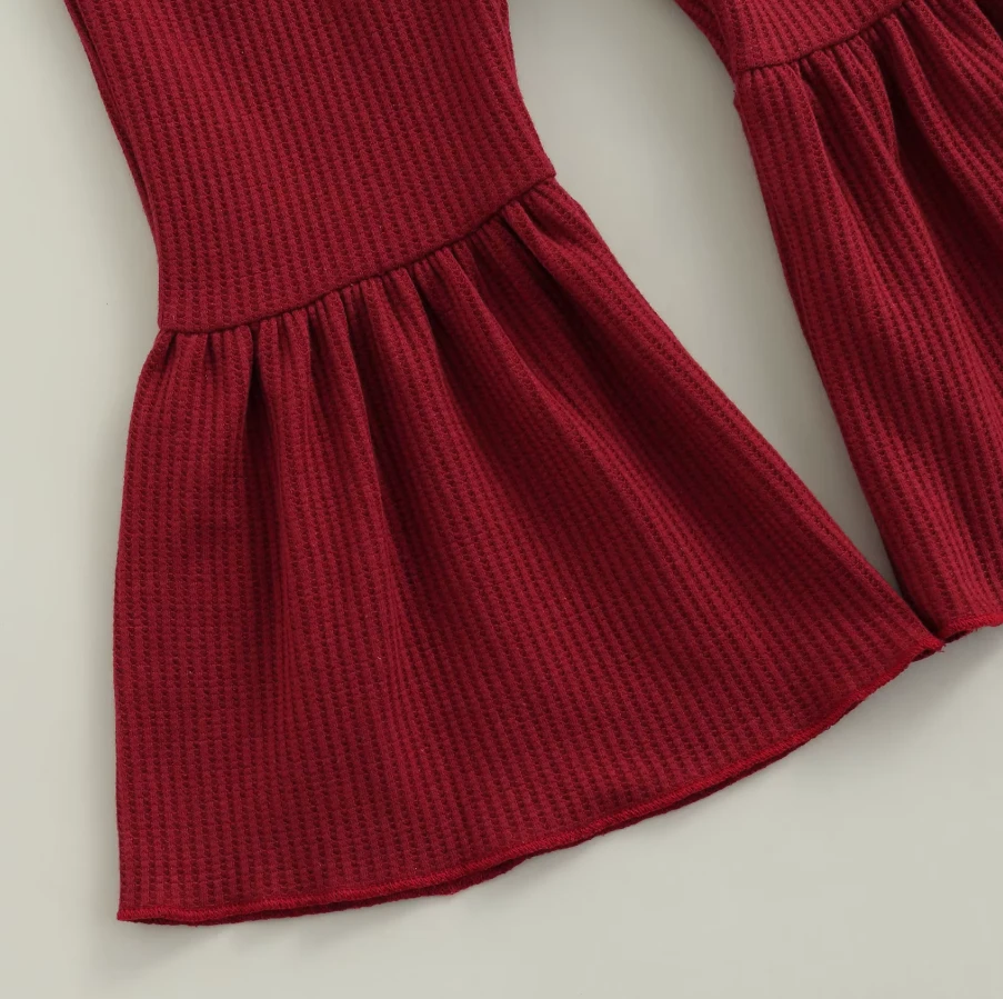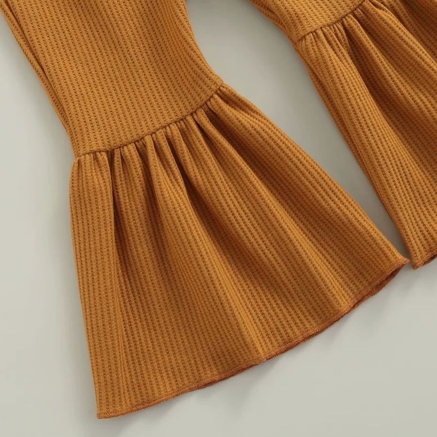 These are solid color cute flare leg elastic waist pants for baby and toddler girls who love comfortable style with a touch of flair. Made from a soft cotton blend, they feature classic solid colors with a trendy flare leg silhouette that adds movement and charm. The elastic waistband ensures easy dressing and all-day comfort. They solve the challenge of finding bottoms that are both practical enough for everyday play and stylish enough to stand out.